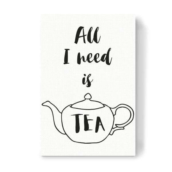 Leinwandbild "All I need is Tea" artboxONE - Typografie,Essen & Trinken,Schwarzweiß - Tea,Tea lover,Tea addict,Tea quotes,Teapot