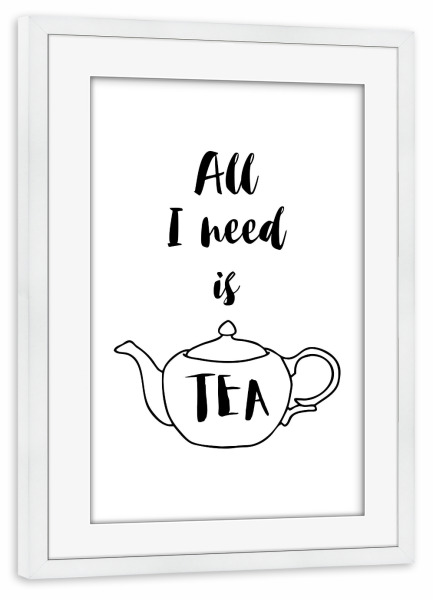 Poster mit Rahmen weiß "All I need is Tea" artboxONE - Typografie,Essen & Trinken,Schwarzweiß - Tea,Tea lover,Tea addict,Tea quotes,Teapot