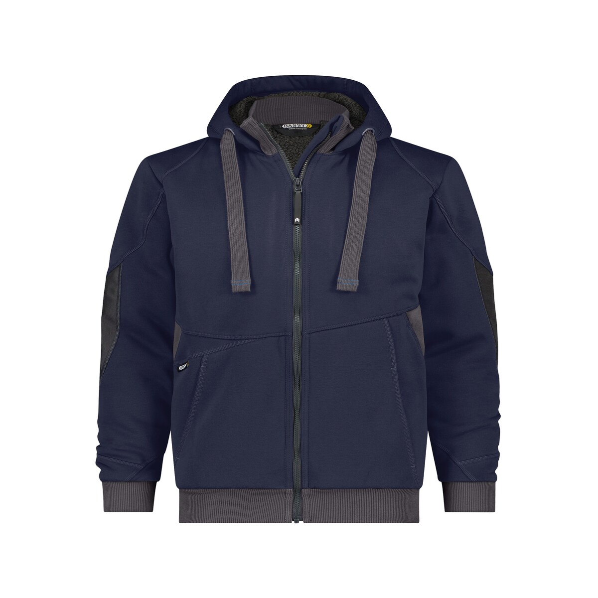 DASSY Pulse Sweatshirt-Jacke, D-FX Flex, Teddy-Futterstoff, Cordura Ellenbogen, Firmenveredelung, Art. 300400 nachtblau/anthrazitgrau L