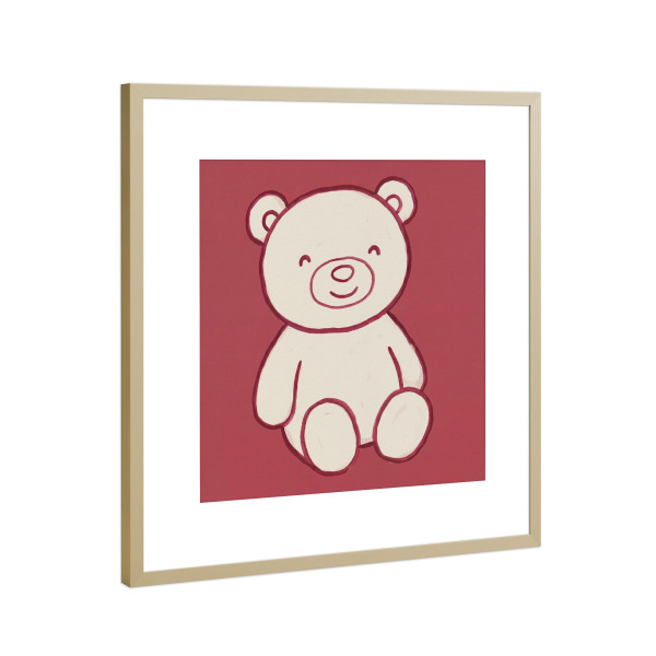 Poster mit Rahmen Gold "Fröhlicher Teddybär Rot" artboxONE - Für Kinder,Tiere - Kinder,Kinder,Kind,Teddybär,Minimalistisch