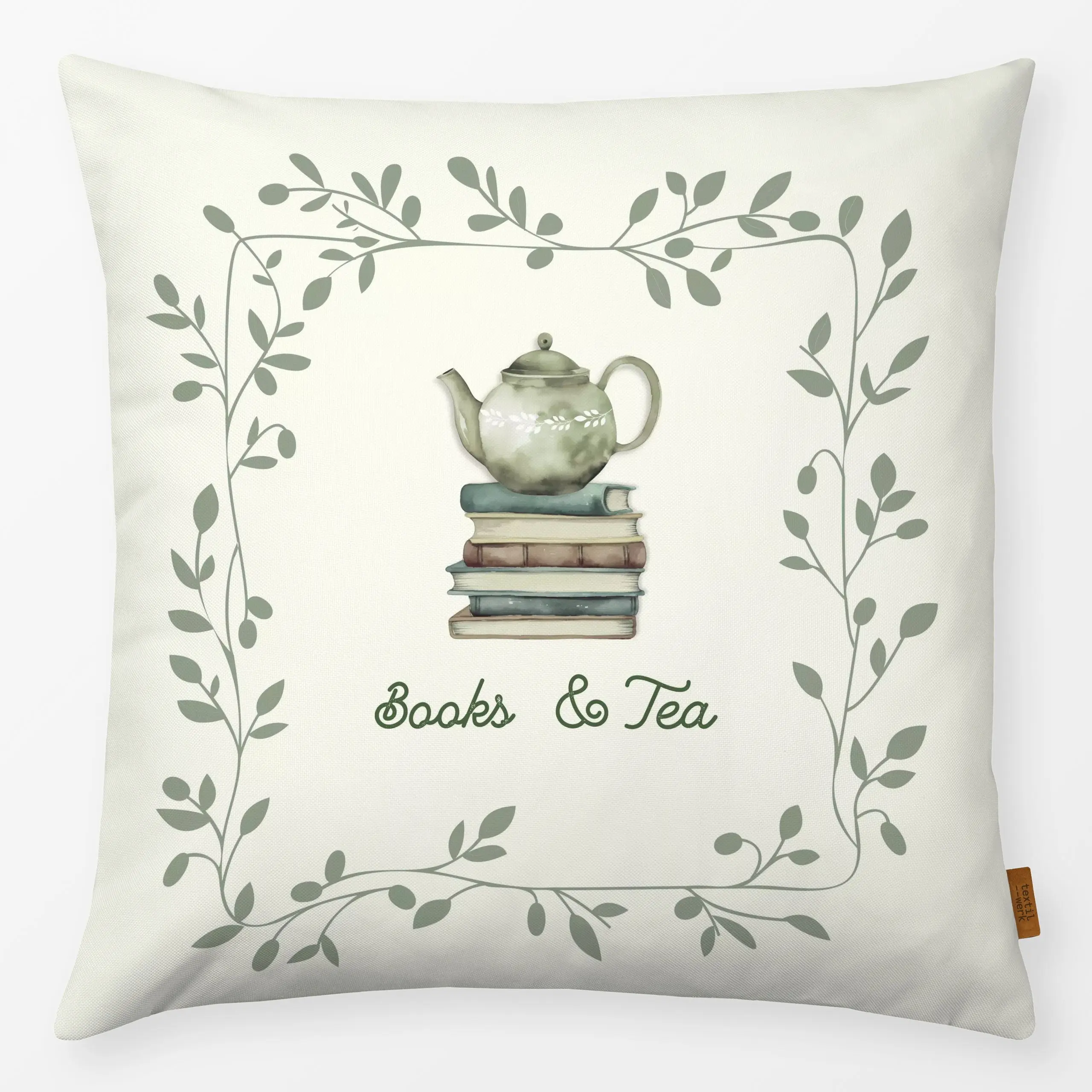 Kissen Bücher & Tee Book Tea - Liebe, Romantik & Pride, Sprüche & Schriftzüge, Küche, Essen & Trinken - von „Monika Strigel"...