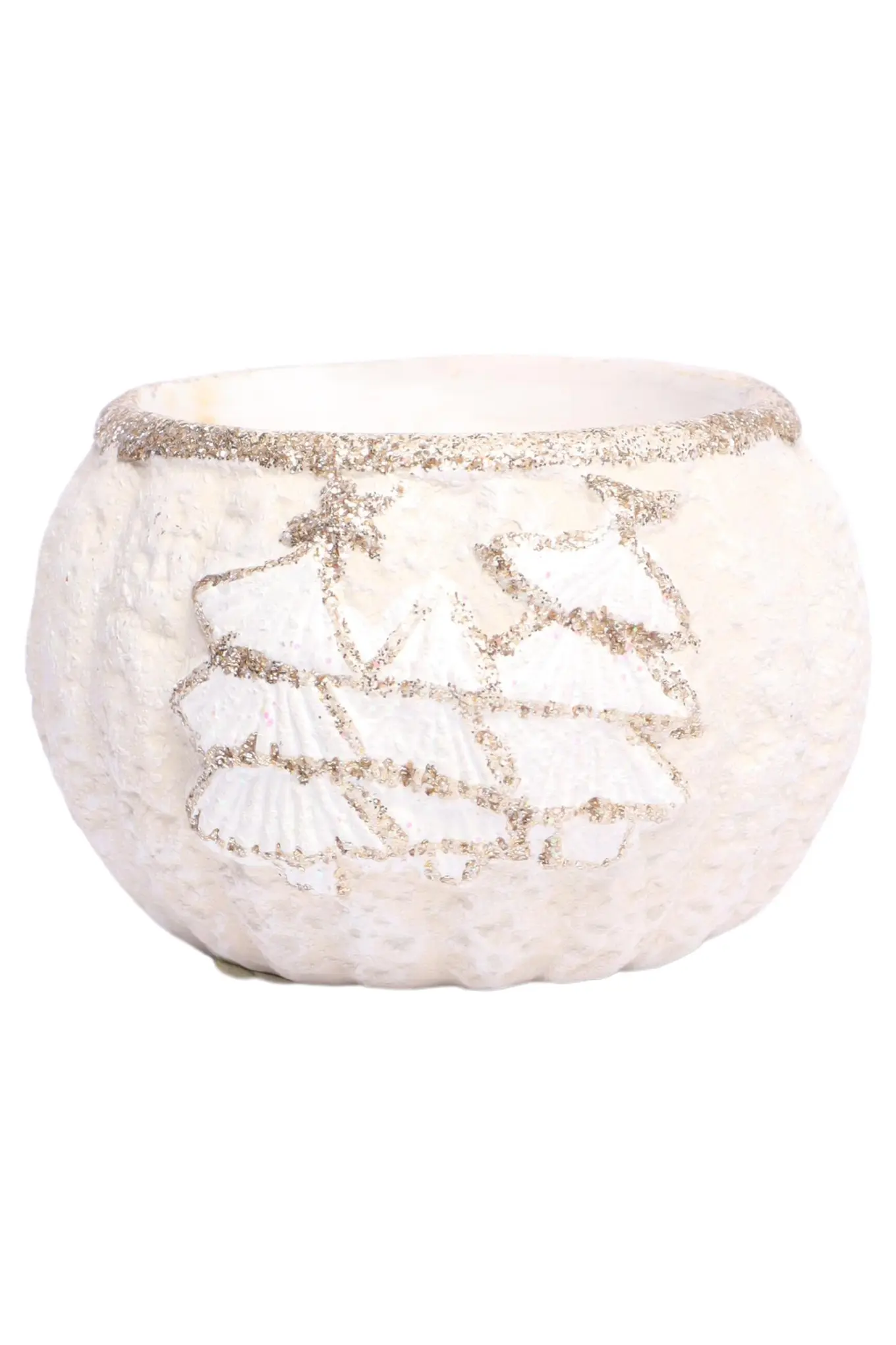 MARKENLOS Weißer Teelichthalter Weihnachten Tannenbaum Glitzer Gips Rund