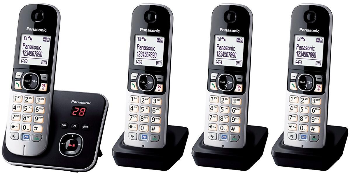 Panasonic KX-TG6824 schnurloses Telefon 4 Mobilteile Anrufbeantworter Freisprechen analog schwarz silber