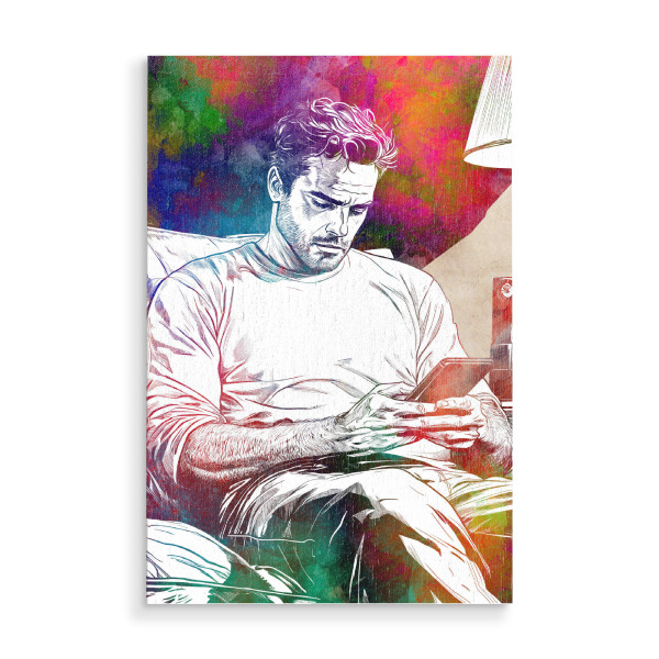 Holzbild "Mann mit Smartphone" artboxONE - Menschen,Männer - Mann,Telefon,Smartphone,Grafik,Entspannen sie sich