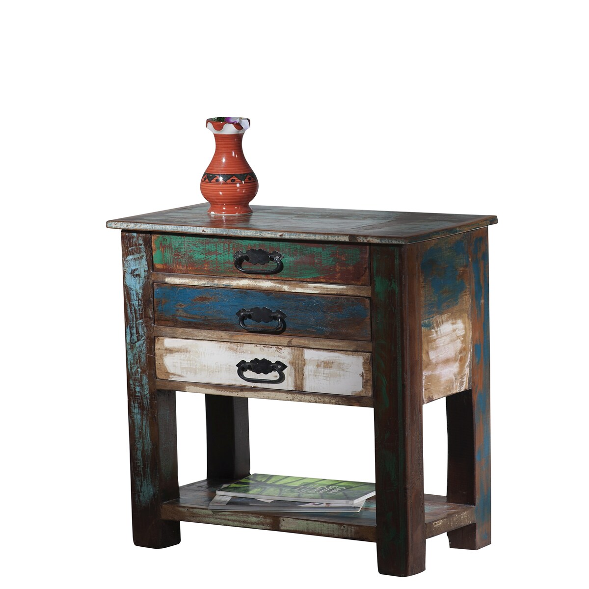 SIT Möbel Telefontisch | 3 Schubladen, 1 Ablageboden | Altholz bunt | B 60 x T 32 x H 79 cm | 09156-98 | Serie RIVERBOAT