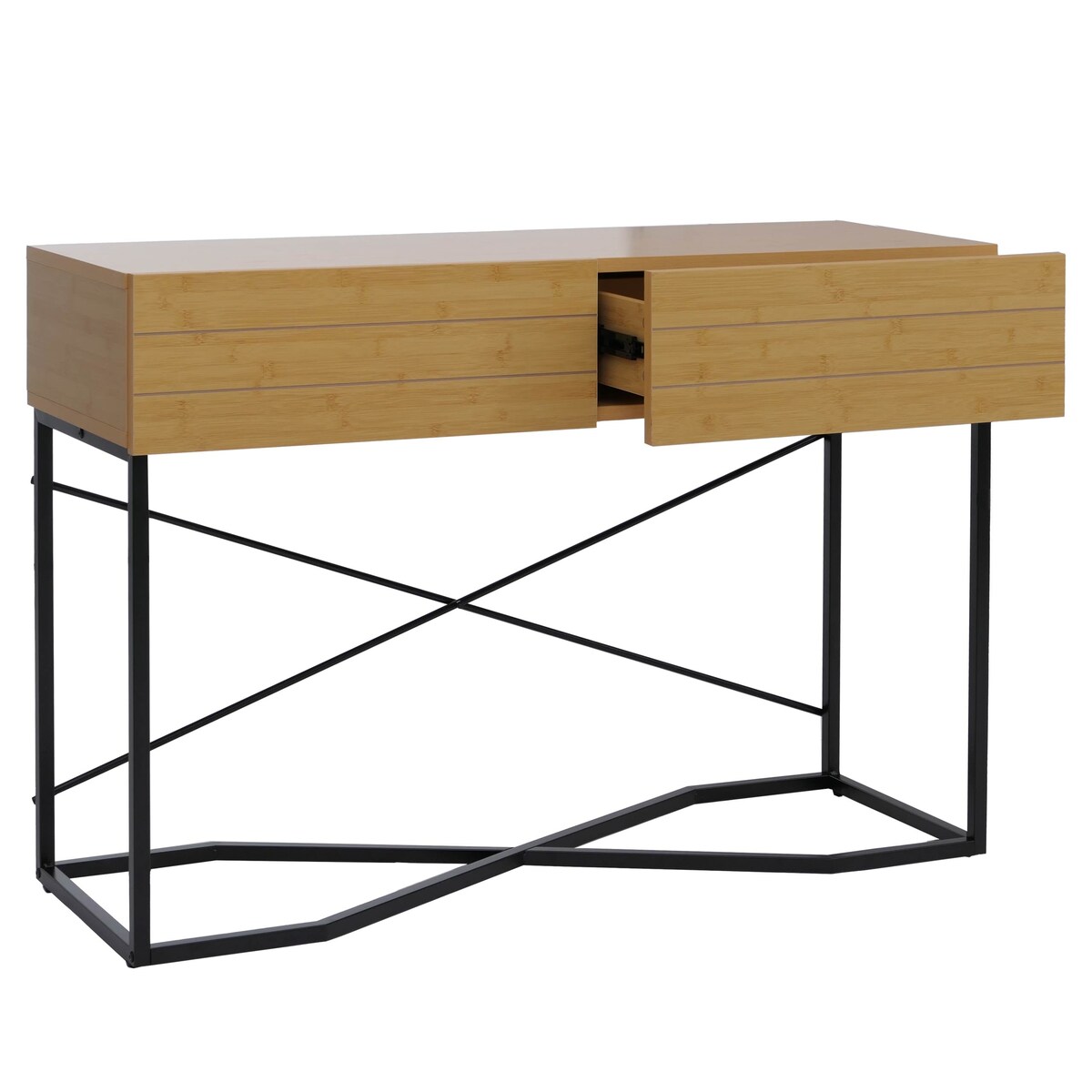 Mendler Konsolentisch HWC-P47, Telefontisch Beistelltisch Ablagetisch, Schublade Melamin Industrial 81x120x40cm ~ Bambus-Optik