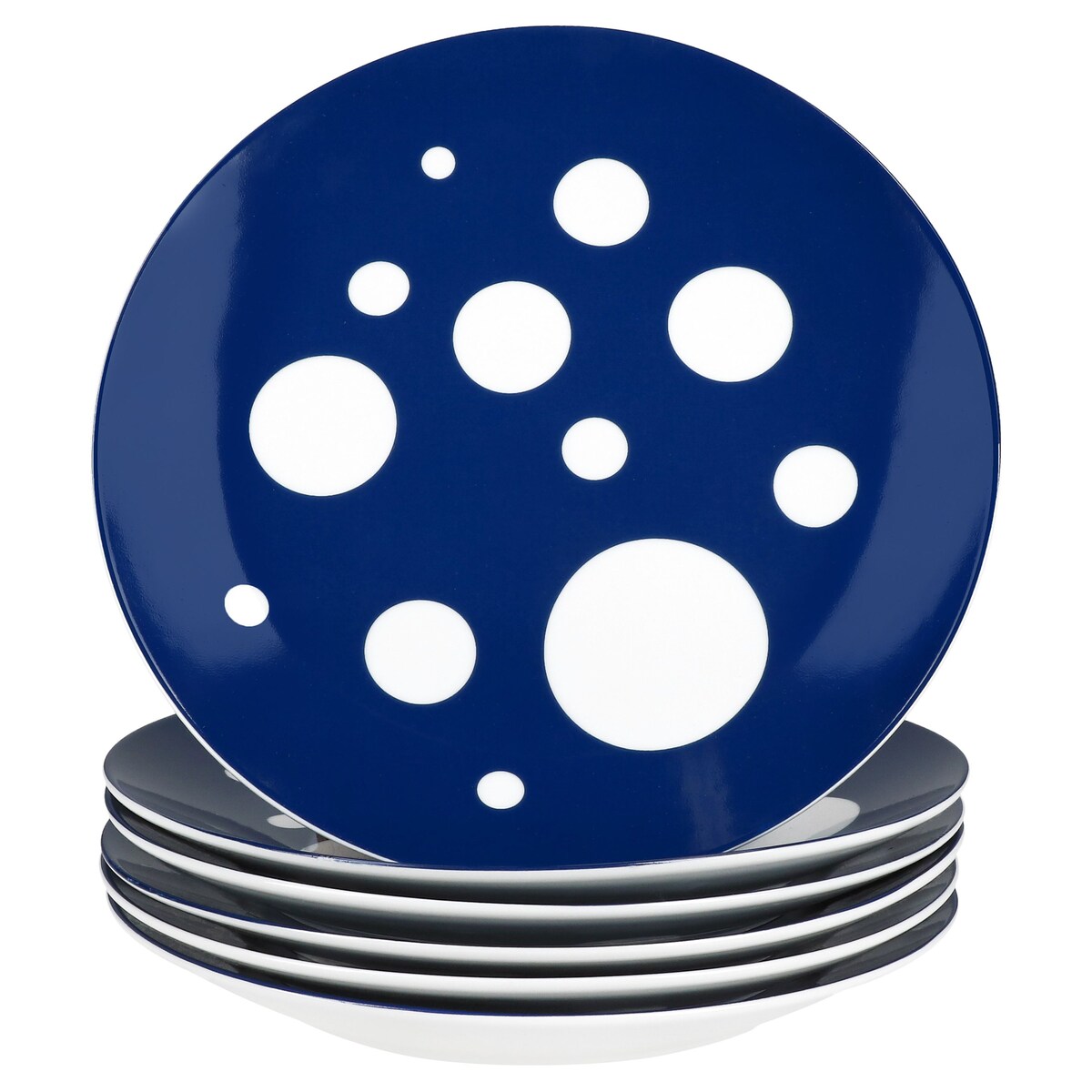 6er Set Pula blau Kuchenteller Porzellan 6 Pers Dessert Frühstücks-Teller Punkte
