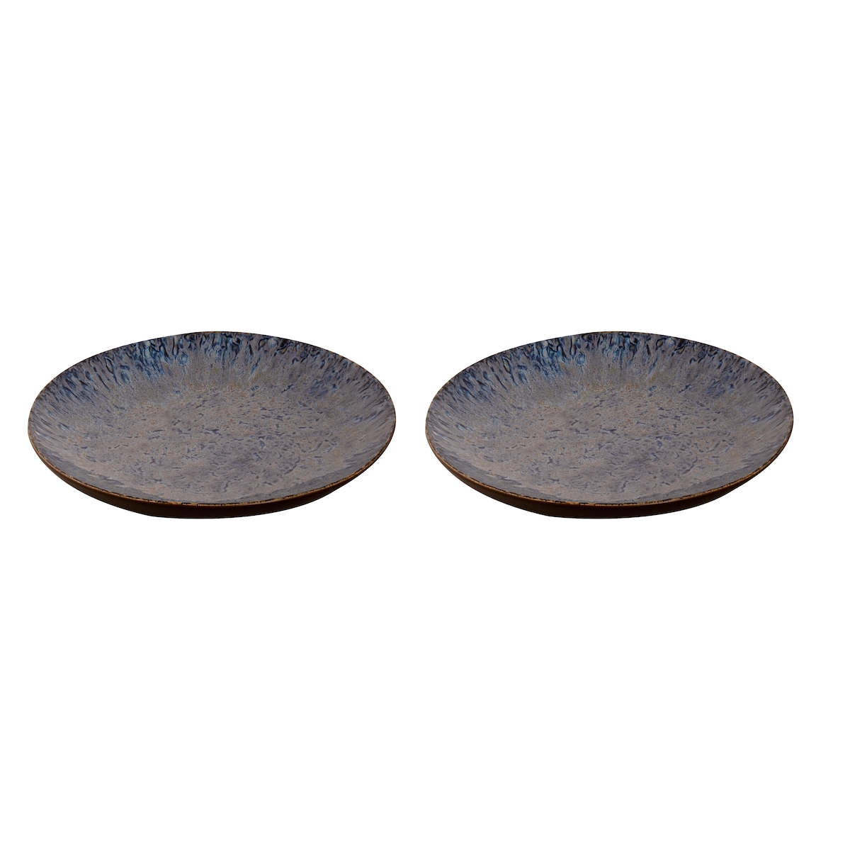 Palmer flache Teller-Set LESTER, 2 x Speiseteller aus Steinzeug Ø 27 cm, moderne Teller in blau-schwarz, robustes Steinzeug Geschirr