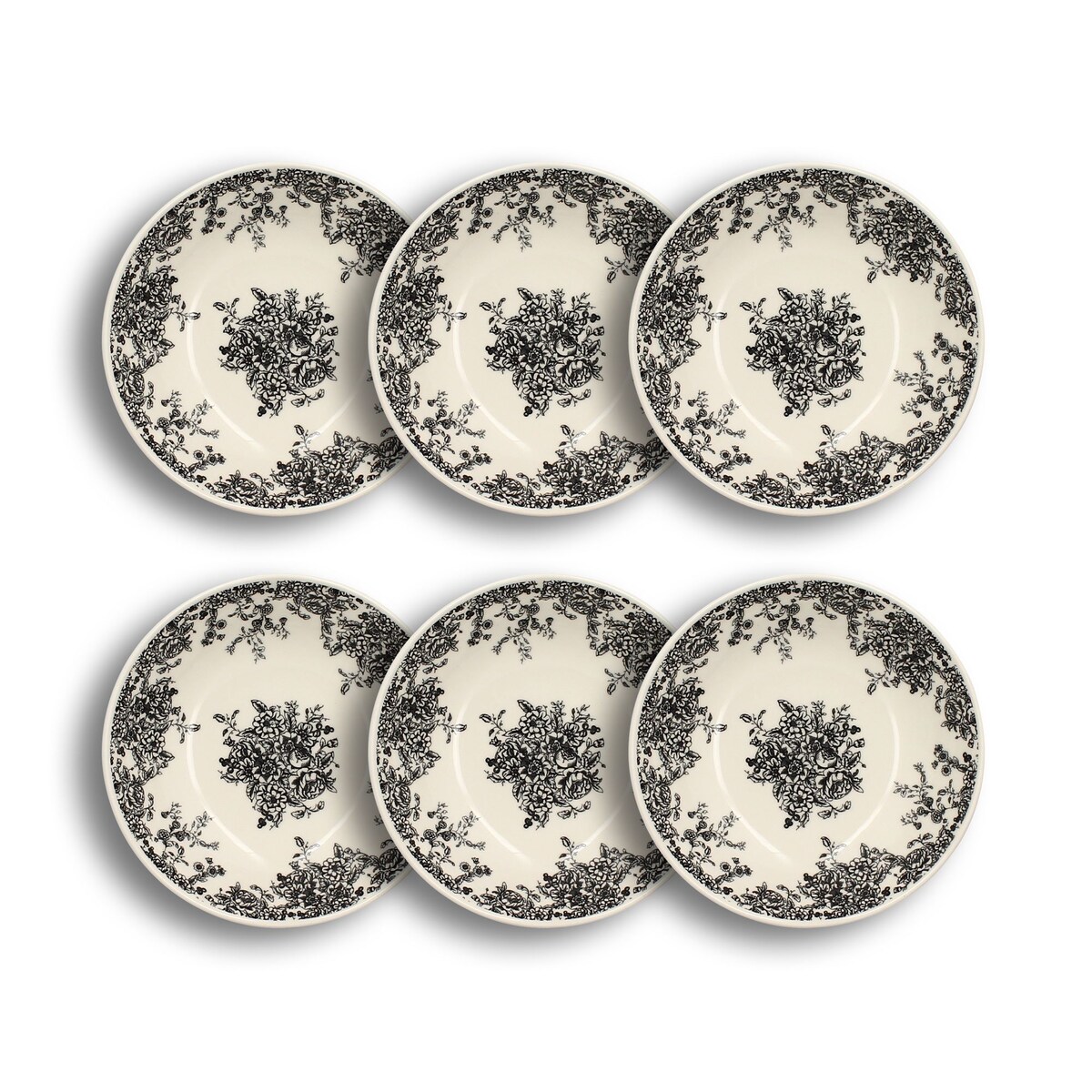 Novastyl - Set 6 tiefe Teller Florali 20,5 cm aus Steingut mit schwarzem Dekor