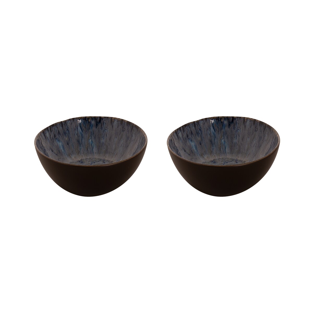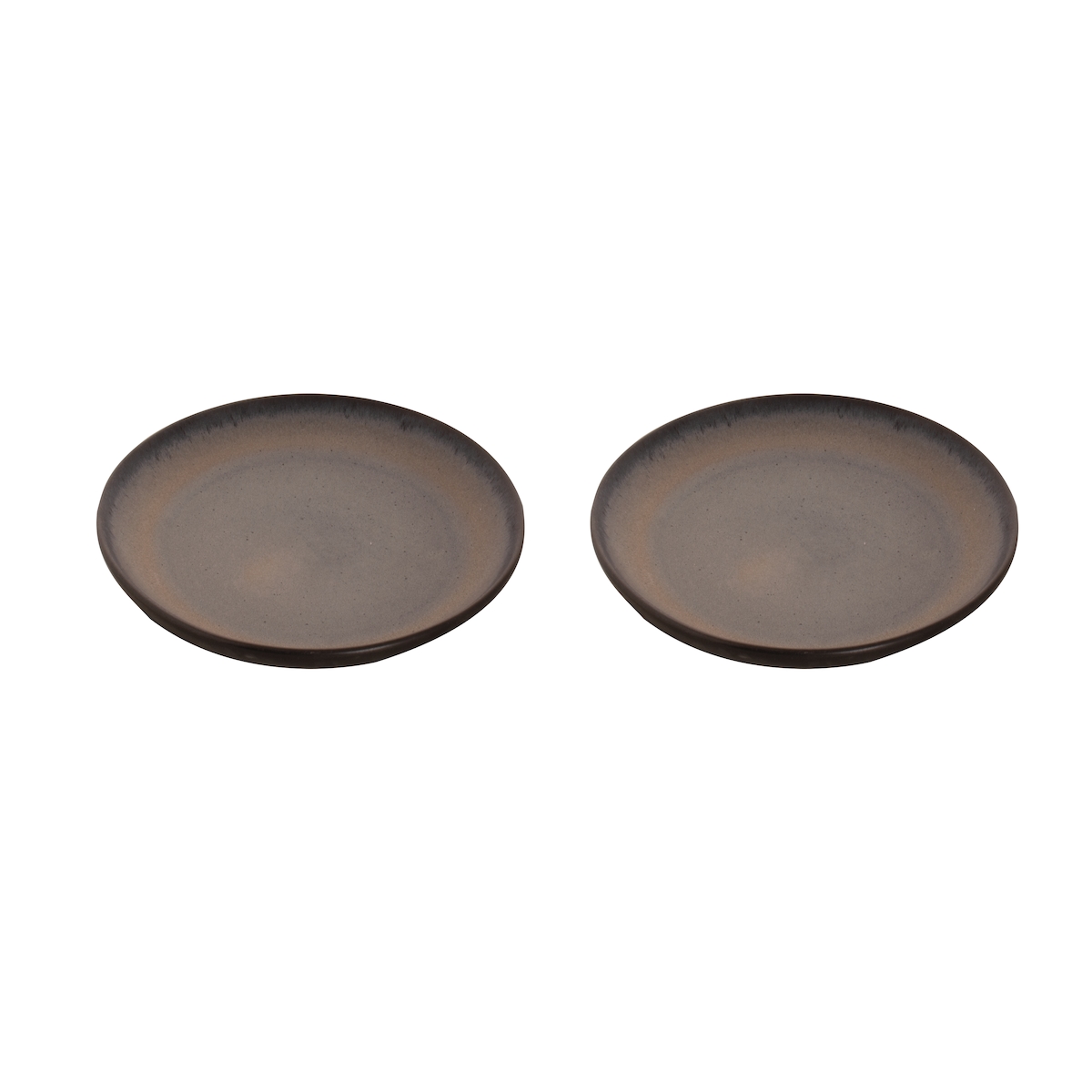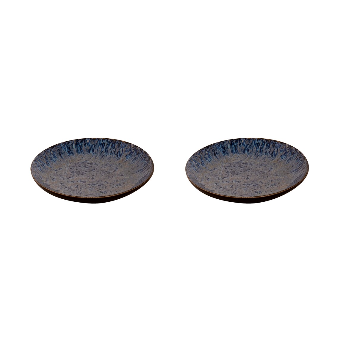 Palmer flache Teller-Set LESTER, 2 x FrühStücksteller aus Steinzeug Ø 21 cm, Teller blauschwarz, modernes Steinzeug Geschirr