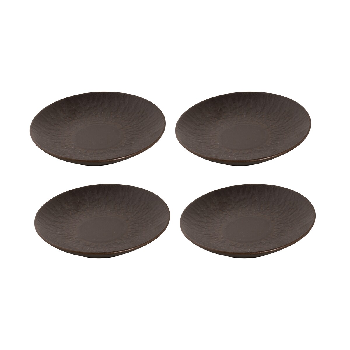 Palmer Flache Teller-Set Ruston, 4 x FrühStücksteller aus Steinzeug Ø 22 cm, Teller dunkelbraun, spülmaschinenfest - Modernes Steinzeug