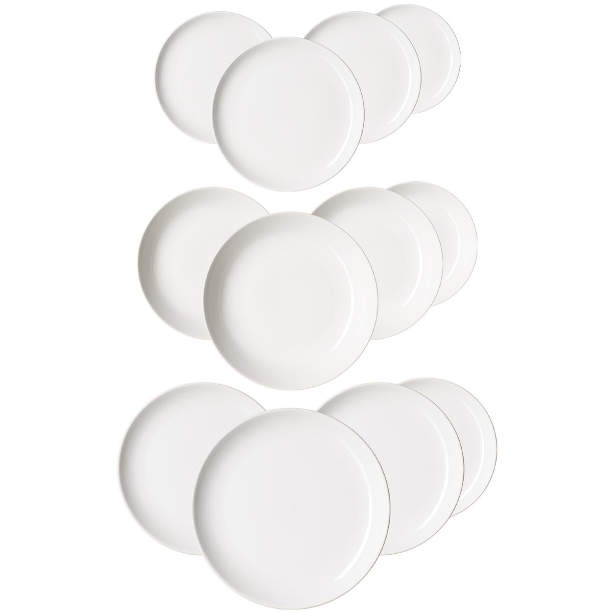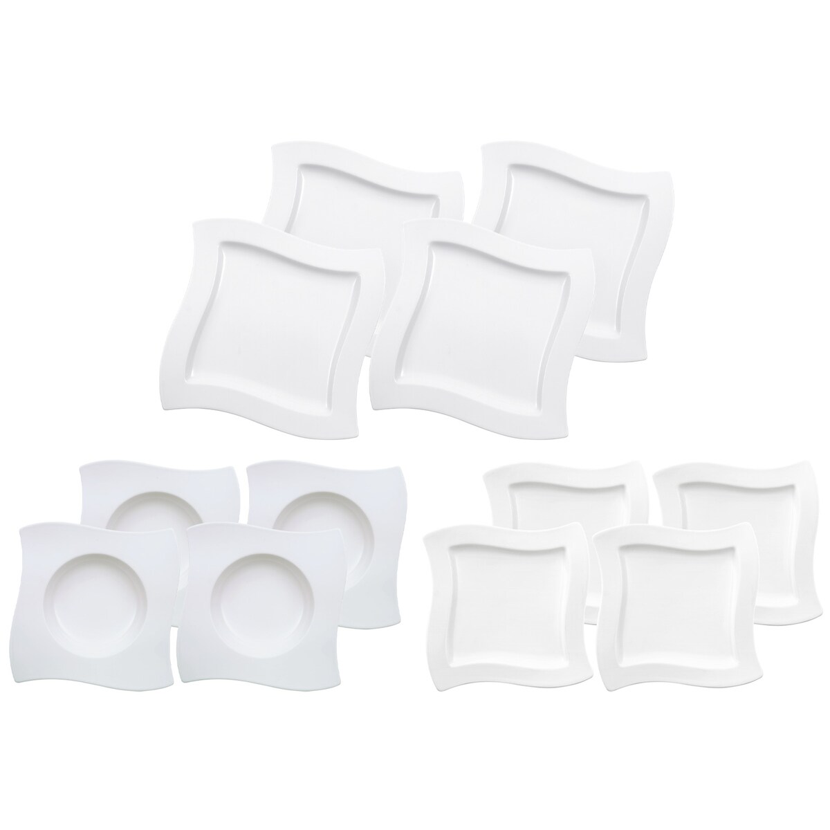 Tellerset 12-teilig | Speise-, Suppen- und Dessertteller für 4 Personen | Geschwungene Wellenformen | Porzellan | Weiß