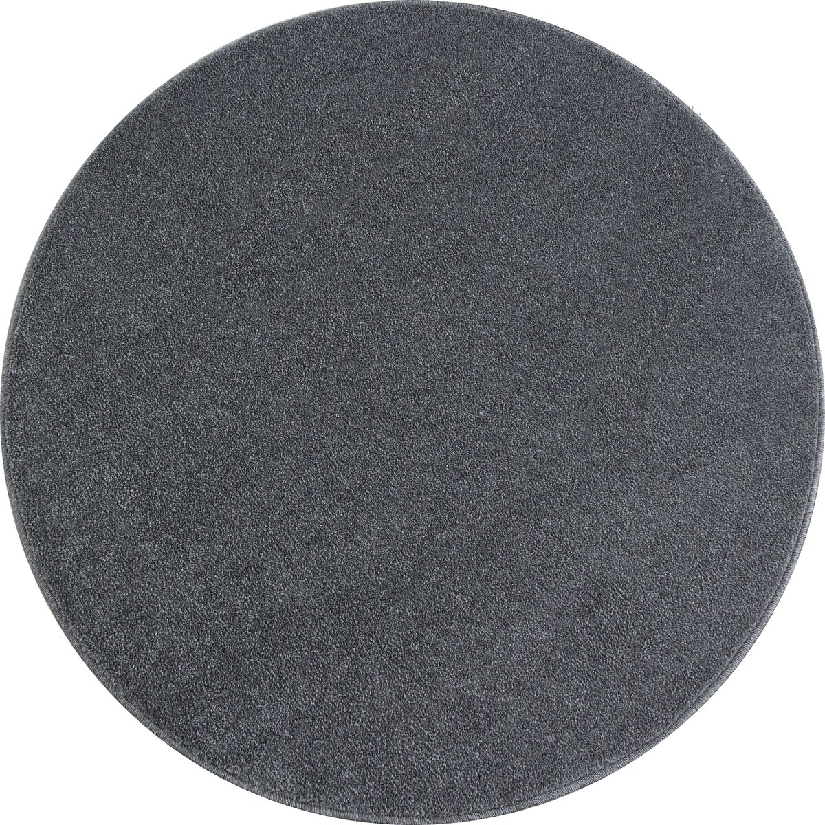 Kurzflor Teppich Wohnzimmer Grau 200x200 Rund Unicolor - Einfarbig aus Polyester