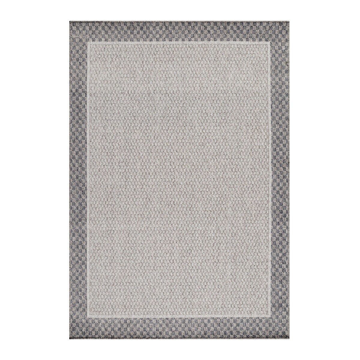 Carpetsale24 In- & Outdoor Teppich 140x200 cm, Wetterfest & Robust, Flachgewebe mit Bordüren-Design in Grau & Creme, für Terrasse, Balkon, Küche