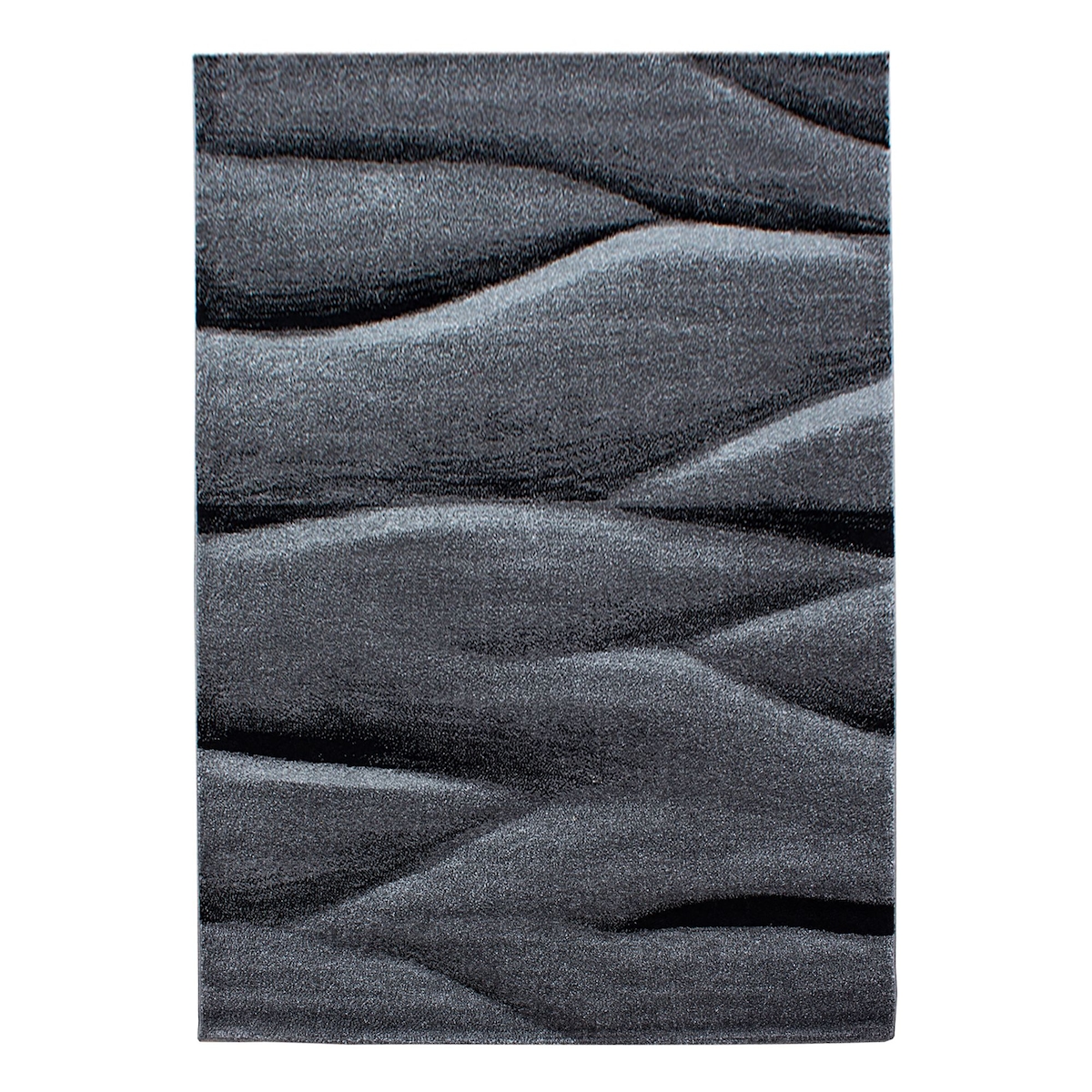 Carpetsale24 Kurzflor Teppich 80x250 cm Abstrakte Wellen Schwarz-Grau, Modern Läufer mit Muster, Wohnaccessoire für Flur, Küche oder schmale Bereiche