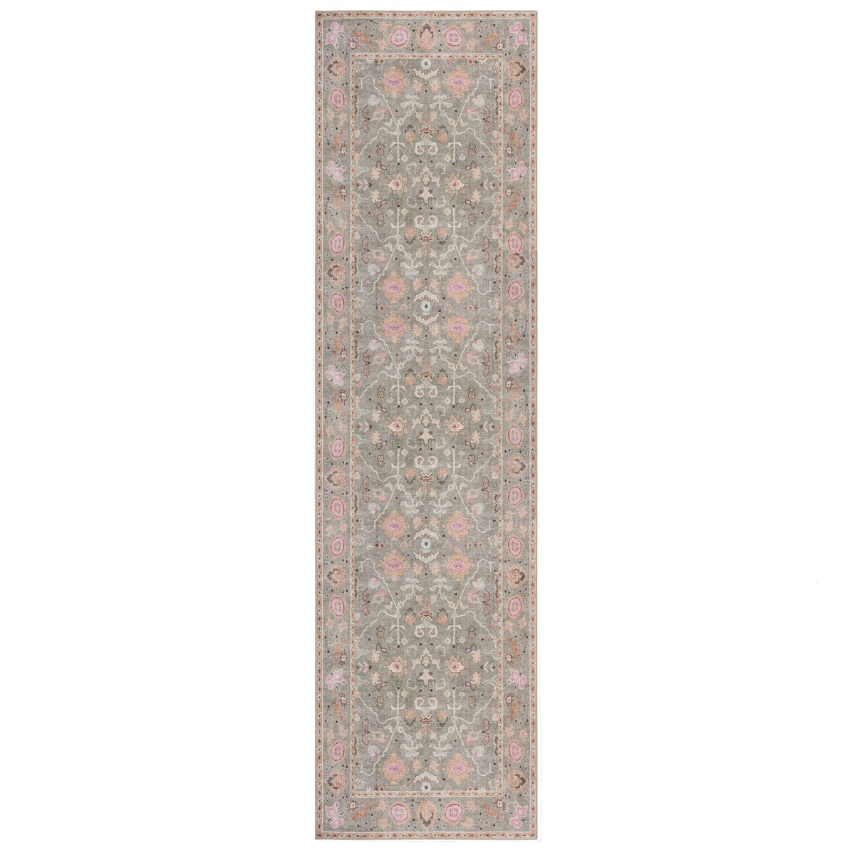 KADIMA DESIGN Waschbarer Teppich Floral Orientalisch Grau Rosa | Vintage-Design | Kurzflor | 60x230cm
