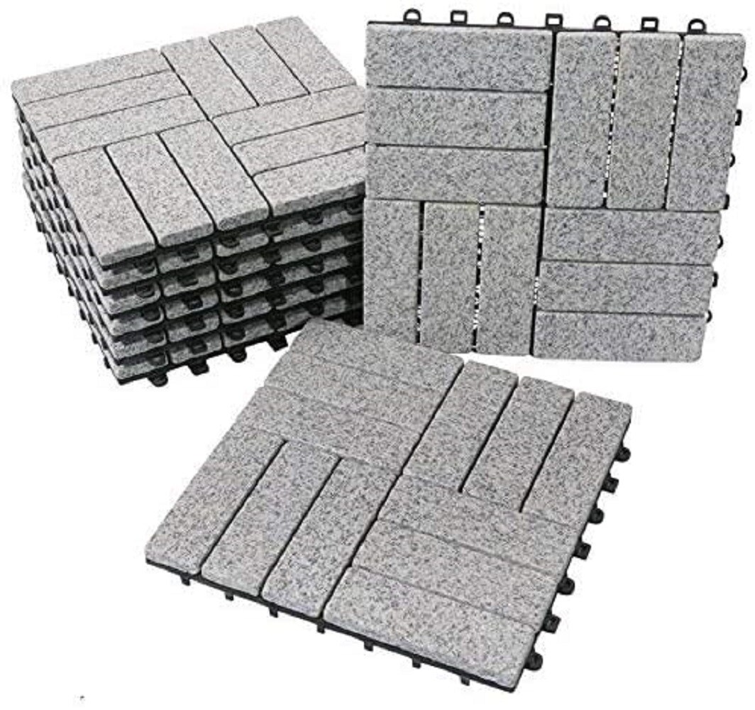 BodenMax Klickfliesen Terrasse grau Gehwegplatten Steinplatten Garten 30x30 cm Fliesen Balkon Klicksystem Wetterfest | Naturstein GRANIT | 8 Stück