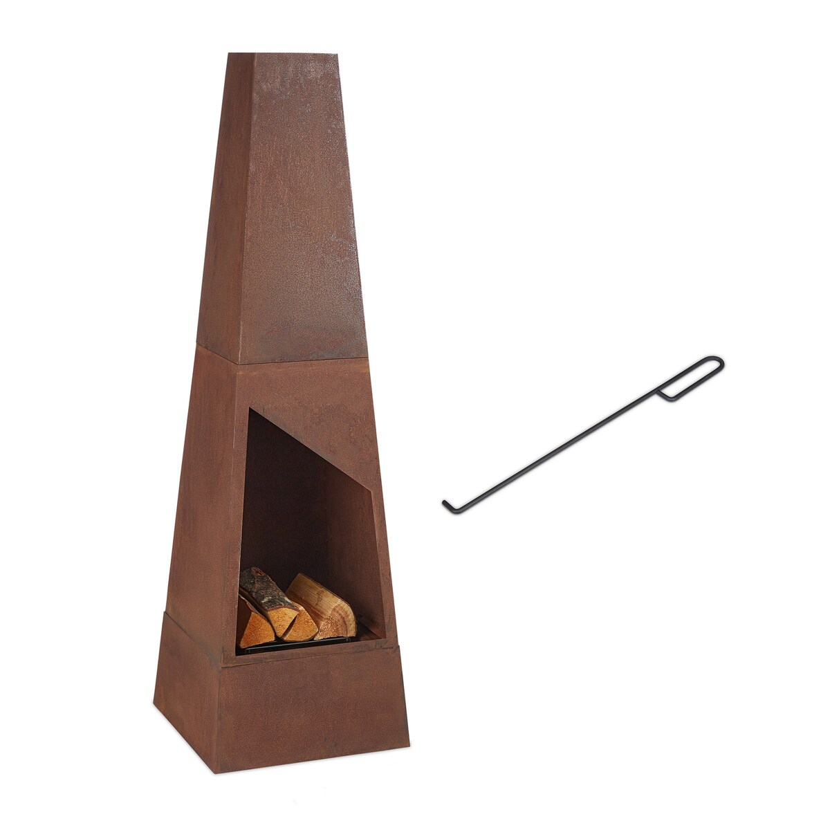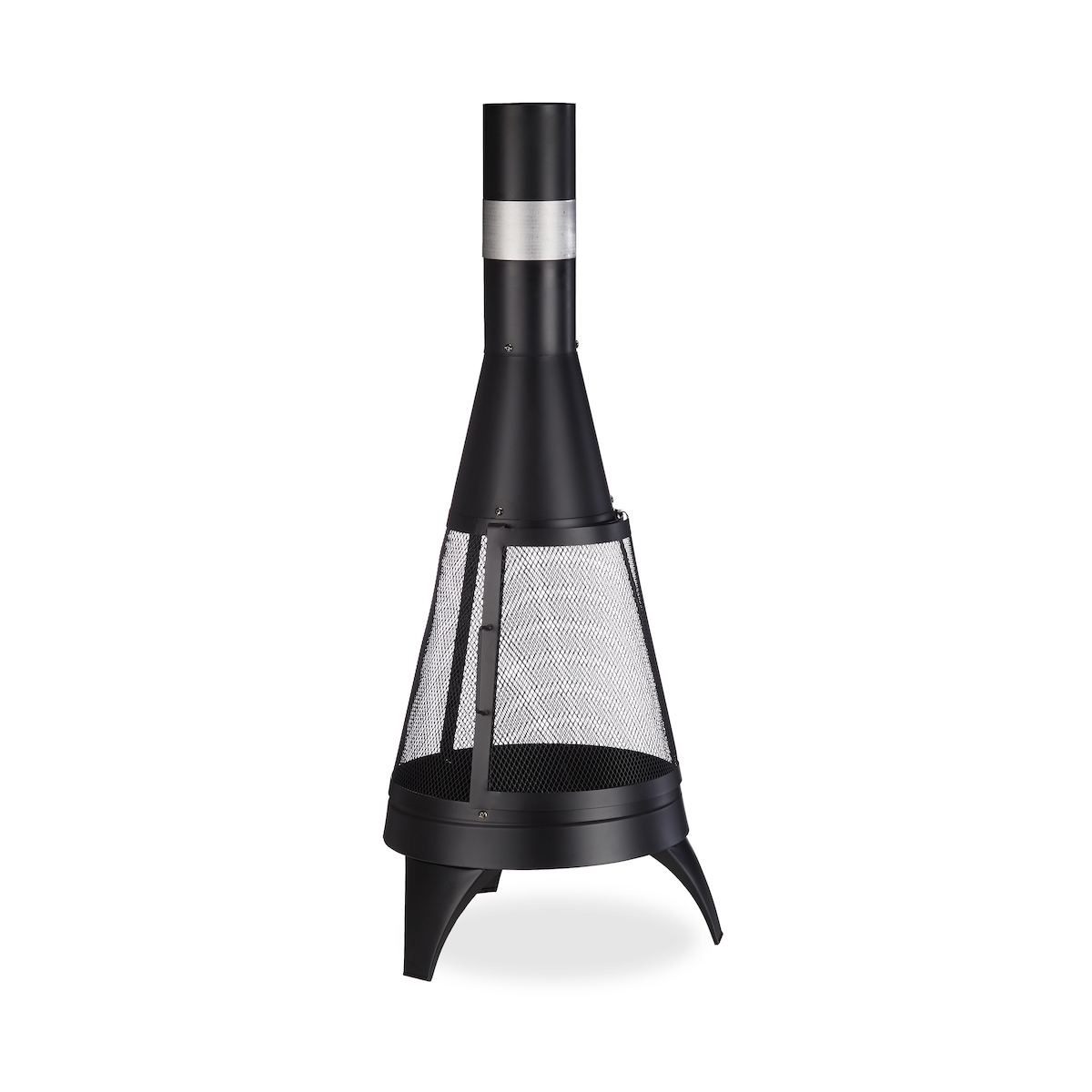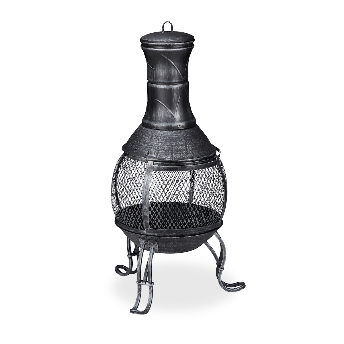 Relaxdays Terrassenofen, mit Funkenschutz, Rost & Schürhaken, Garten & Terrasse, HxD: 120 x 47 cm, Gartenkamin, schwarz