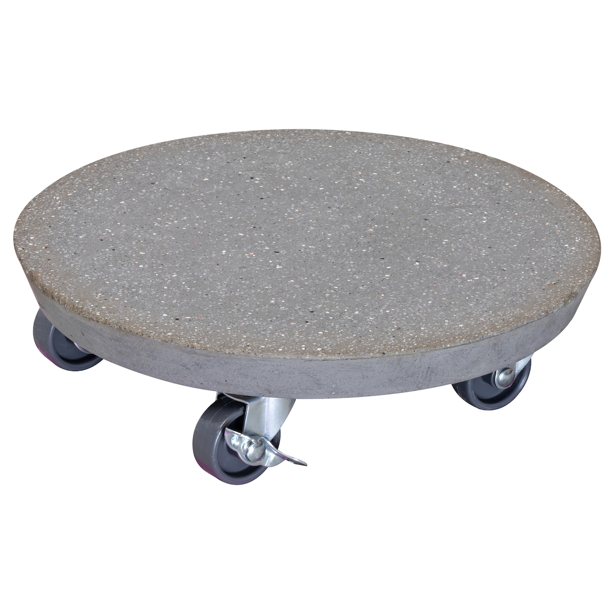 WAGNER Pflanzenroller STONE Ø 28 x 7,5 cm, außen & innen, Beton, Terrazzo dunkel, Bremsen, Tragkraft 100 kg - 20090101