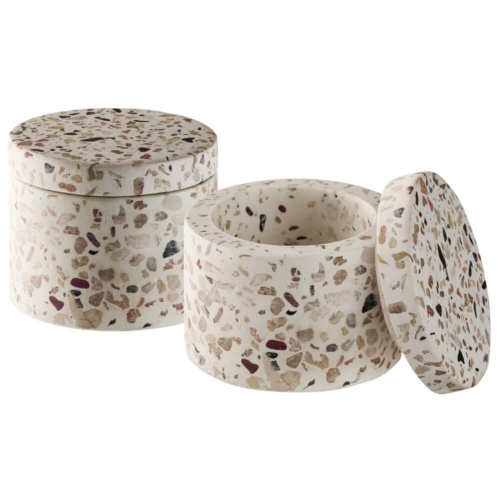 APS Dose TERRAZZO 2er Set - Beton, Ø 6 cm, Höhe 5 cm, 40 ml,Terrazzooptik, Unikat (Farb + Form kann minimal abweichen)