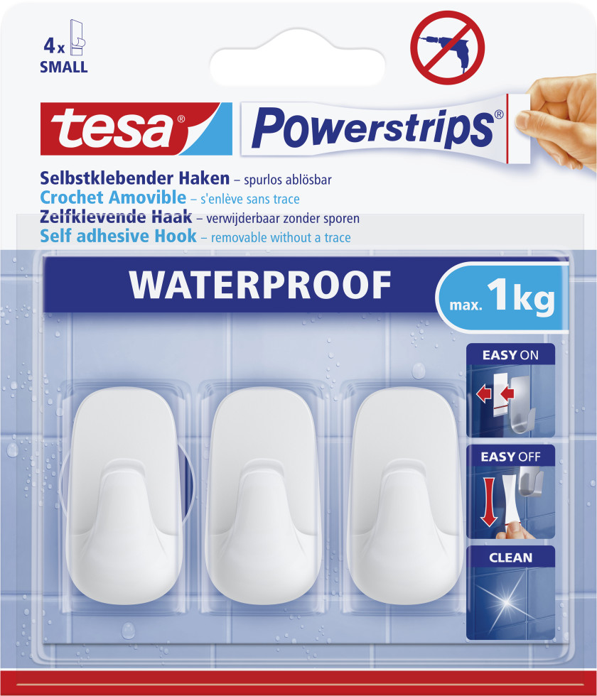 tesa Powerstrips Haken Small Waterproof rechteckig, weiß
