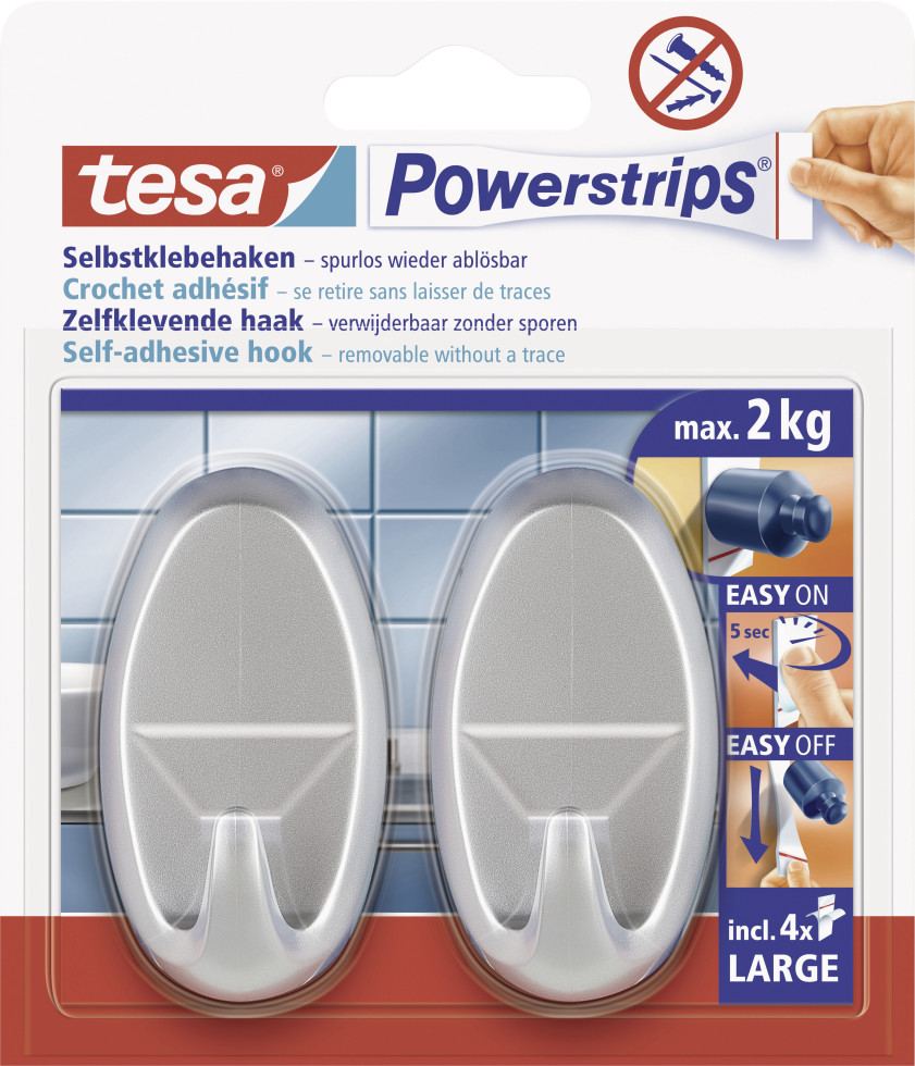 Haken tesa Powerstrips Large 58050 - oval chrom bis 2 kg für glatte Oberflächen Kunst