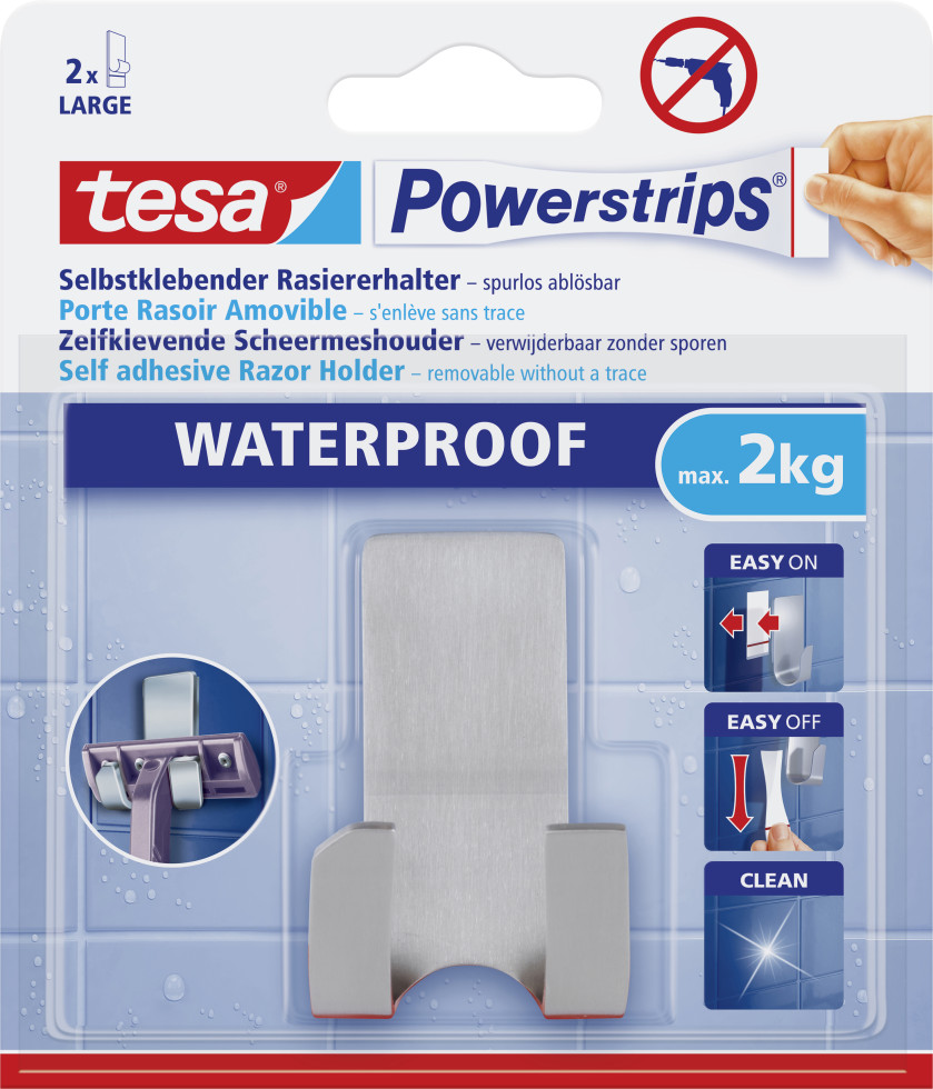 tesa Rasiererhalter Powerstrip Edelstahl, waterproof