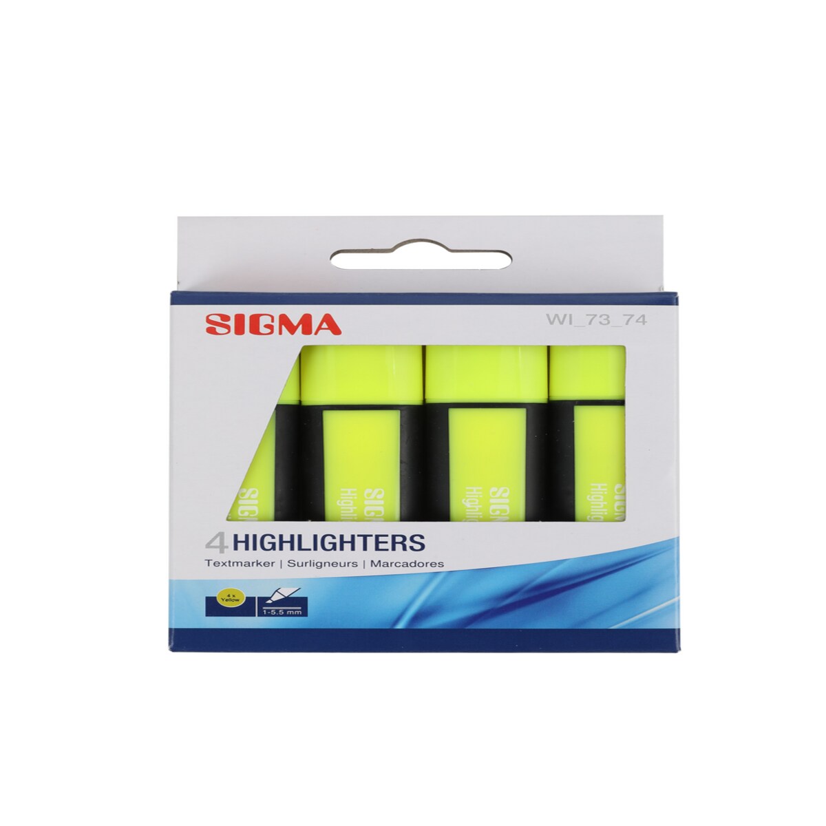 SIGMA Textmarker, gelb, Keilspitz, Strichstärke 1 - 5.2 mm, 4 Stück