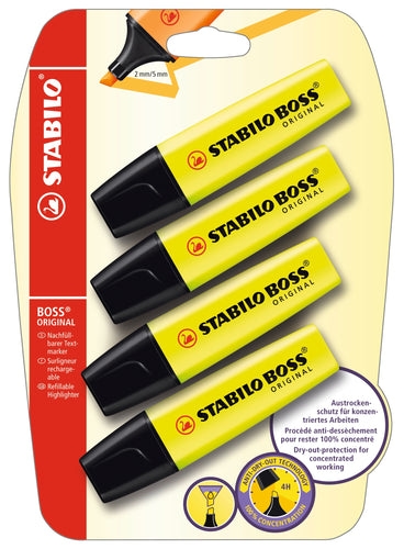Textmarker - STABILO BOSS ORIGINAL - 4er Pack - gelb
