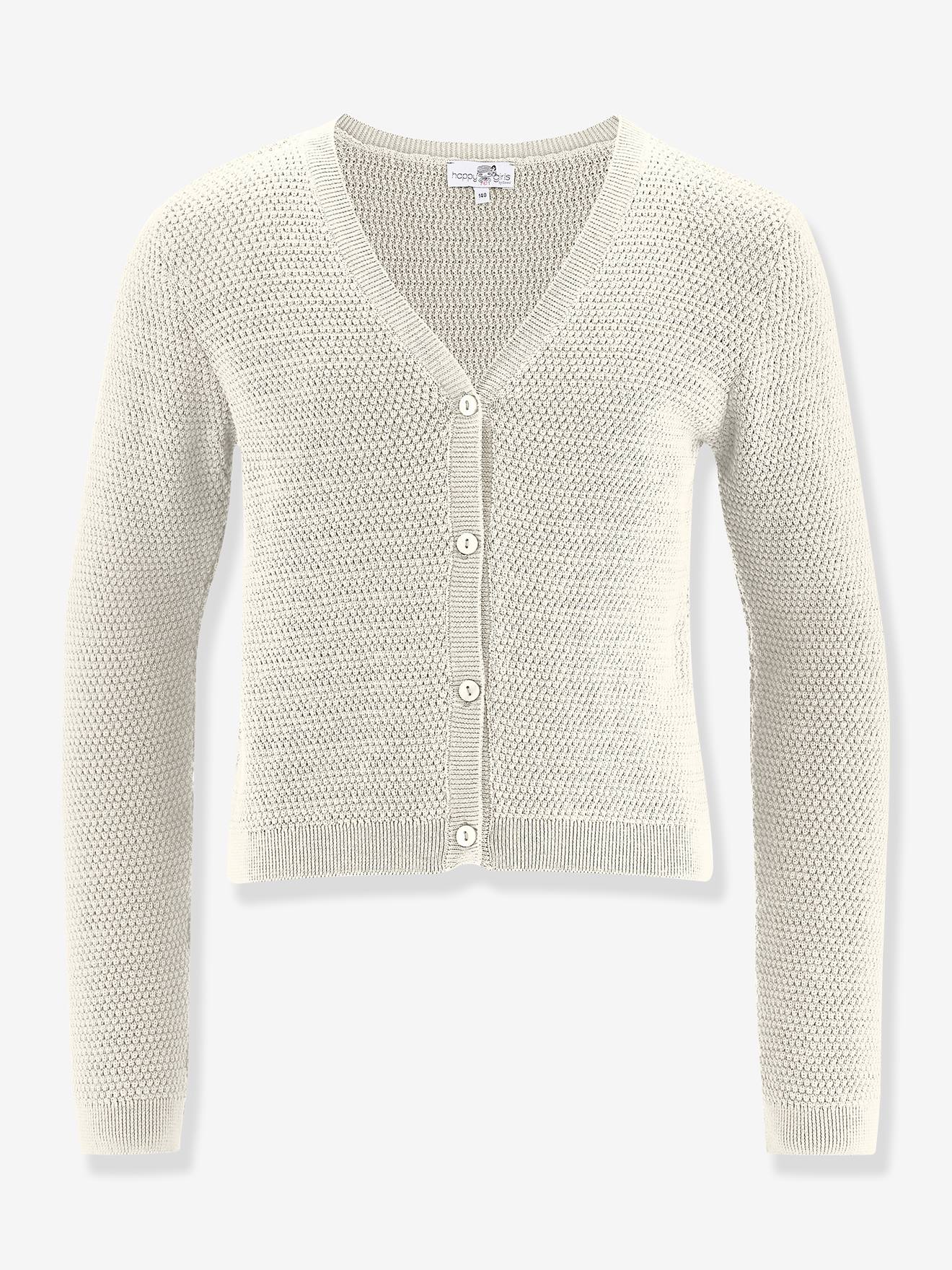 Mädchen Cardigan aus Musterstrick mit V-Ausschnitt Happy Girls wollweiß Gr. 146