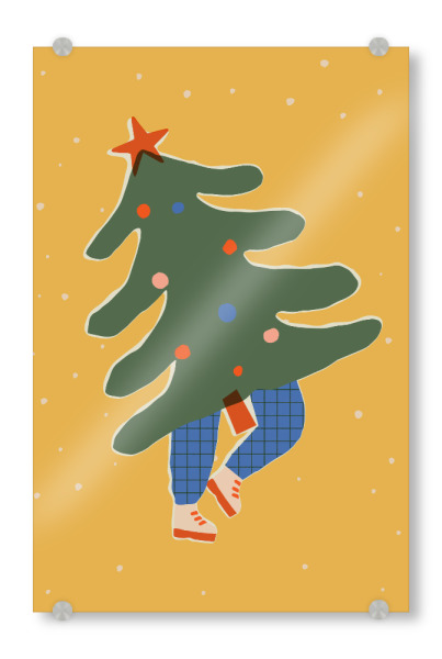 Acrylglasbild "Happy Christmas (49)" artboxONE - Für Kinder,Weihnachten,Für Mama - Weihnachten,Tannenbaum,Christmas,Lustig,Xmas,Illustration,Gelb,Baum