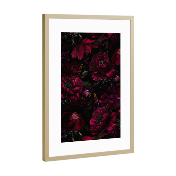 Poster mit Rahmen Gold "Burgundy Midnight Rose Garden" artboxONE - Natur,Floral,Für Mama