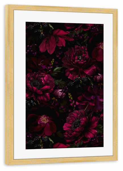 Poster mit Rahmen kiefer "Burgundy Midnight Rose Garden" artboxONE - Natur,Floral,Für Mama