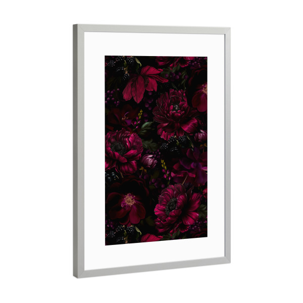 Poster mit Rahmen Silber "Burgundy Midnight Rose Garden" artboxONE - Natur,Floral,Für Mama