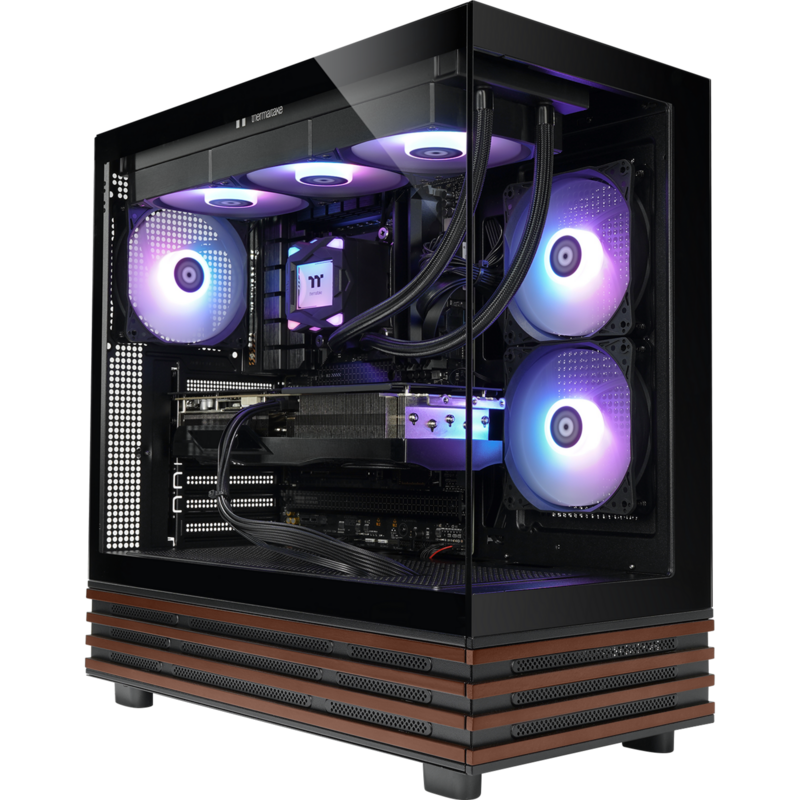 Thermaltake FTW V270WS 9060XT Gaming-PC, schwarz/holz, Windows 11 Pro