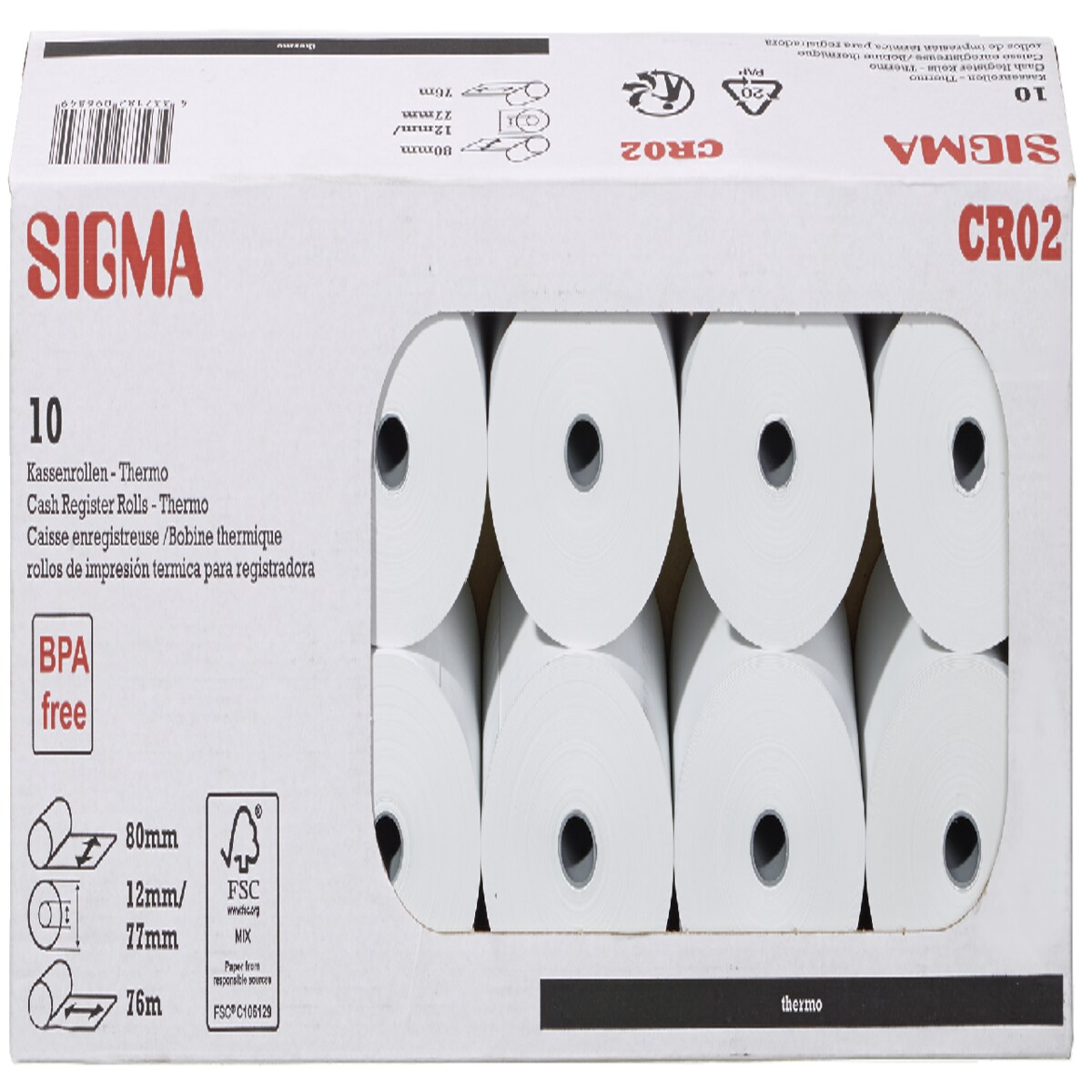 SIGMA Thermo-Kassenrollen CR02, 80 mm x 76 m, 10 Stück