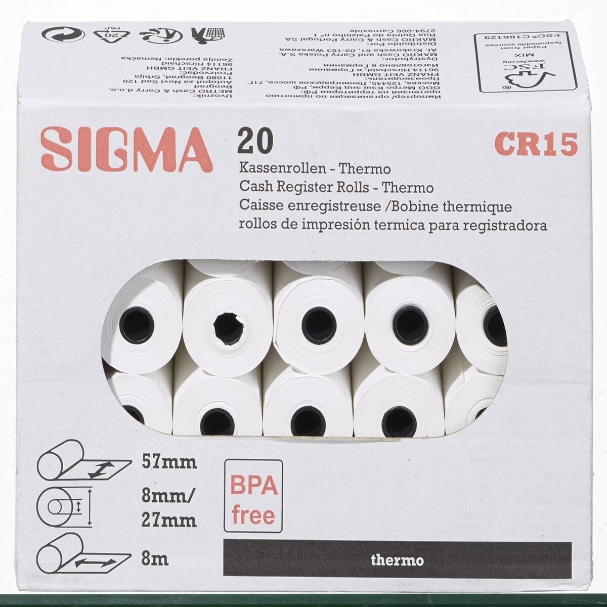 SIGMA Thermo-Kassenrollen CR15, 57 mm x 8 m, 20 Stück