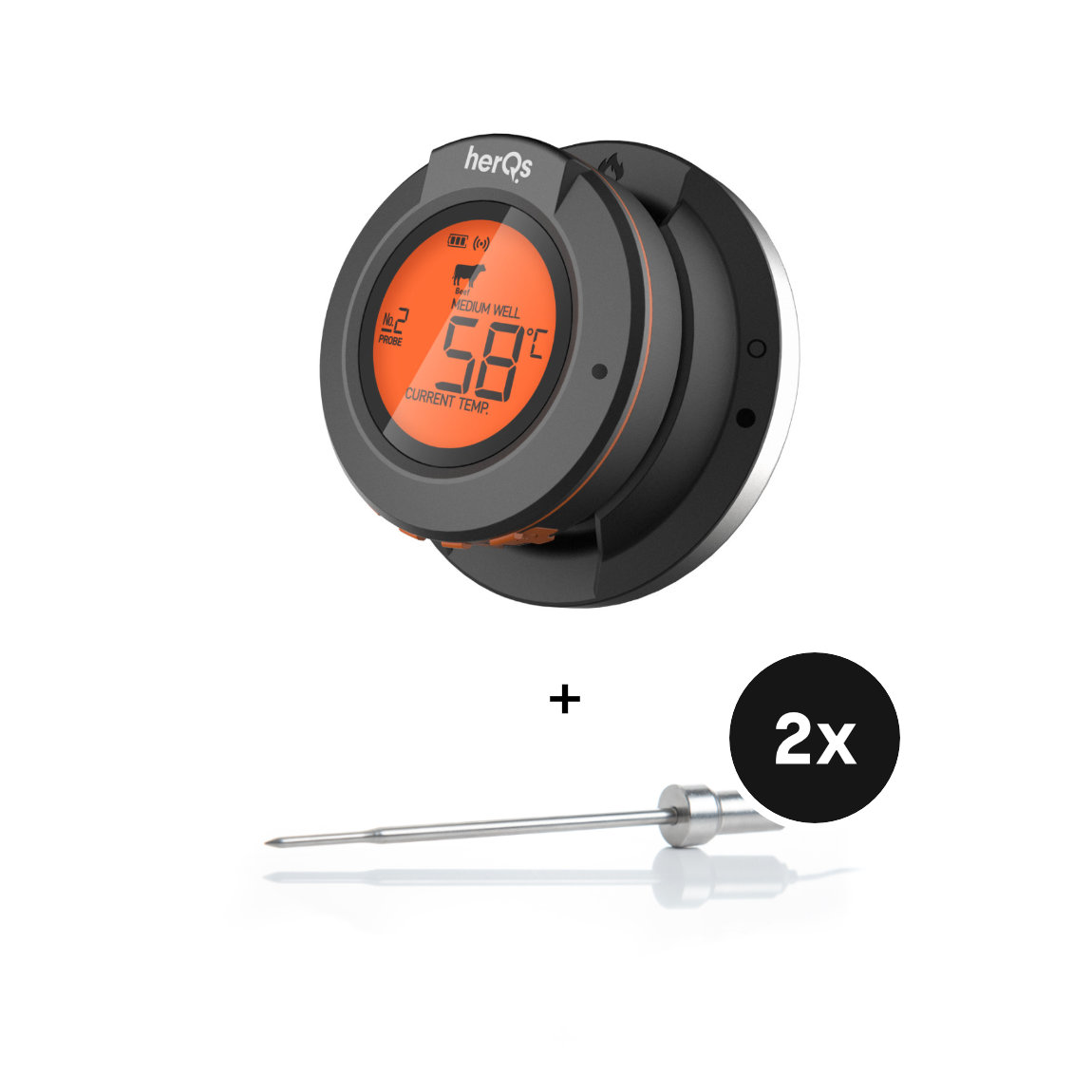 HerQs Set - mit Dome Thermometer Grillthermometer + Zusatz-Grillsonden