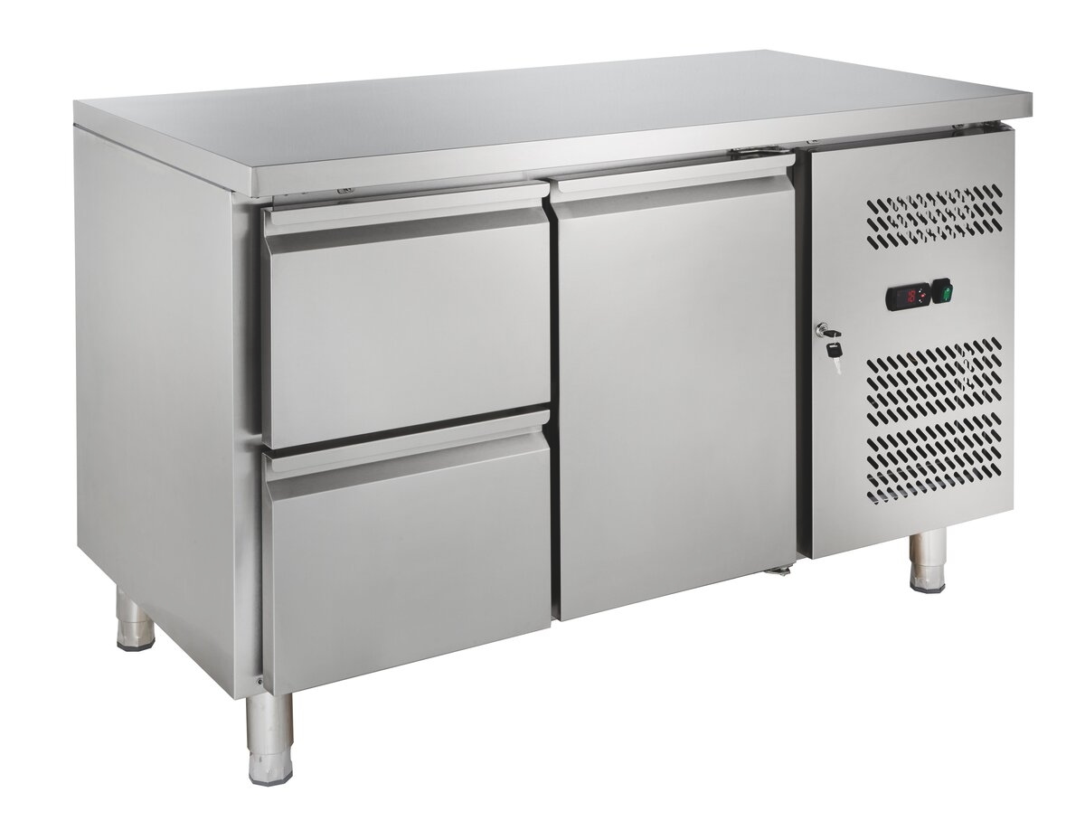 GastroHero Kühltisch ECO 1/2 GN 1/1 214 L Edelstahl Umluftkühlung 0 °C–+8 °C 230 V LED-Thermostat 1350x700x850 mm 1 Tür + 2 Schubladen