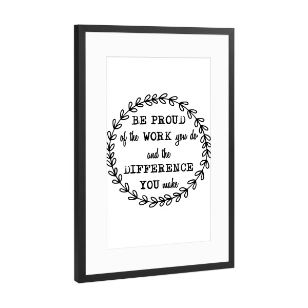 Poster mit Rahmen Schwarz (Metallic) "Be Proud Of The Work You Do" artboxONE - Typografie,Schwarzweiß,Lehrersprüche,Sport / Motivation