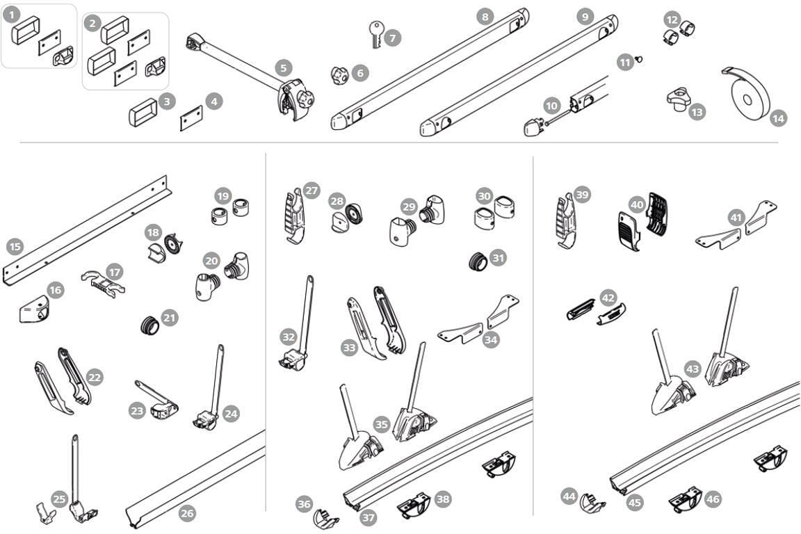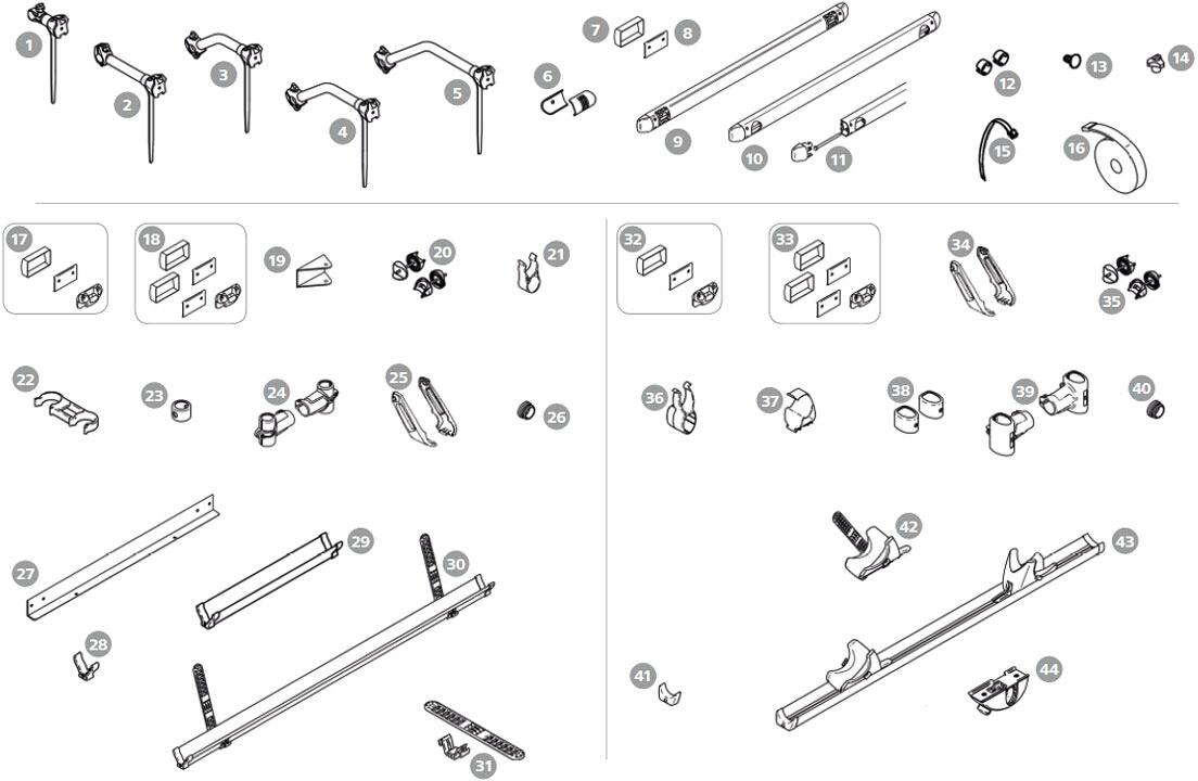 Montagesatz komplett - Thule Ersatzteil Nr. 1500602383 - passend zu Thule Fahrradträger Sport G2 / Elite G2 / Lift
