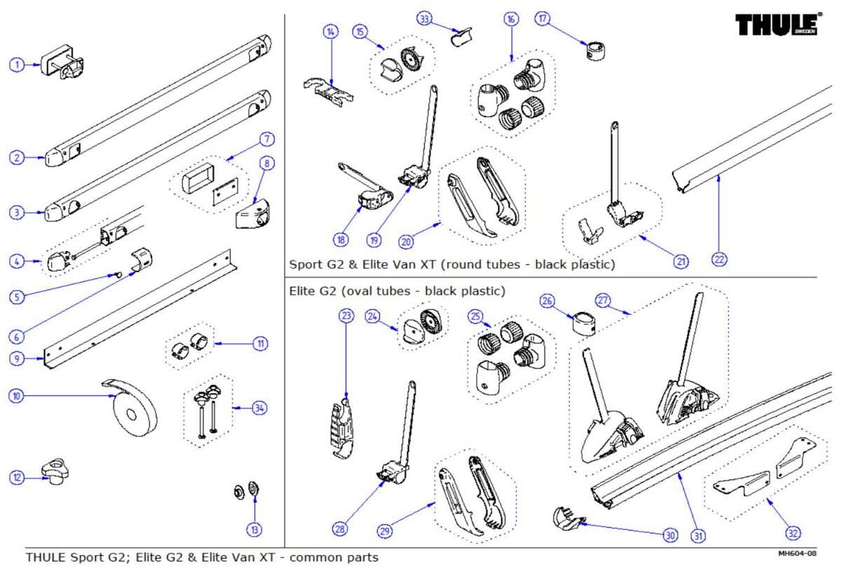 Endkappen + Bandhalterungen - Thule Ersatzteil-Nr. 1500602629 - passend zu Y-Schiene Thule Sport G2