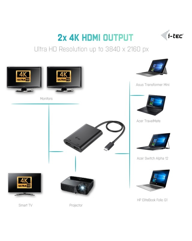 I-Tec USB-C dual HDMI Video Adapter 2x 4K compatible with Thunderbolt Digital/Daten Digital/Display/Video Video/Analog USB