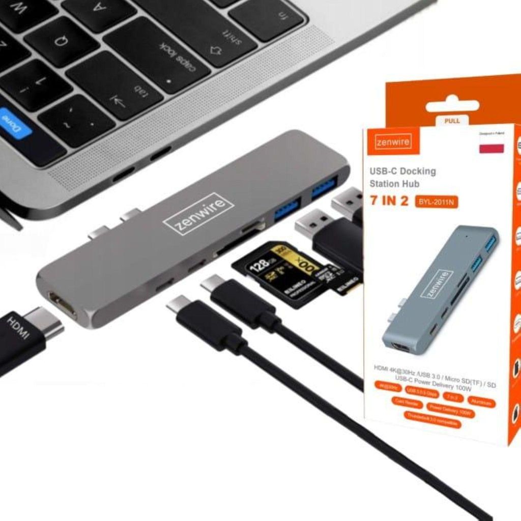 Adapter - 7-in-1 USB-C Hub - HDMI 4K - SD - USB 3.0 - Thunderbolt 3 - für MacBook Pro Air M1 M2 M3 - fur Samsung