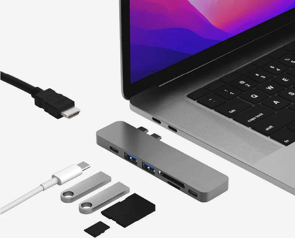 iMounts USB-C Hub für MacBook Air/Pro - HDMI, Thunderbolt 3, USB3.0, Laden - Space Gray