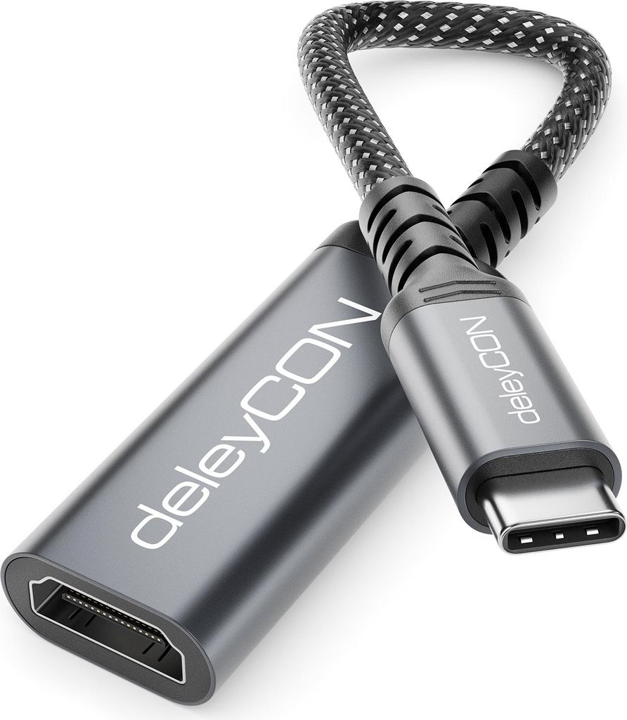 deleyCON 1m 4K USB-C auf HDMI Kabel - 4K@60Hz 2K@120Hz mit Aluminiumstecker & Nylonkabel Kompatibel mit Thunderbolt 3/4 Handy Smartphone Tablet PC ...