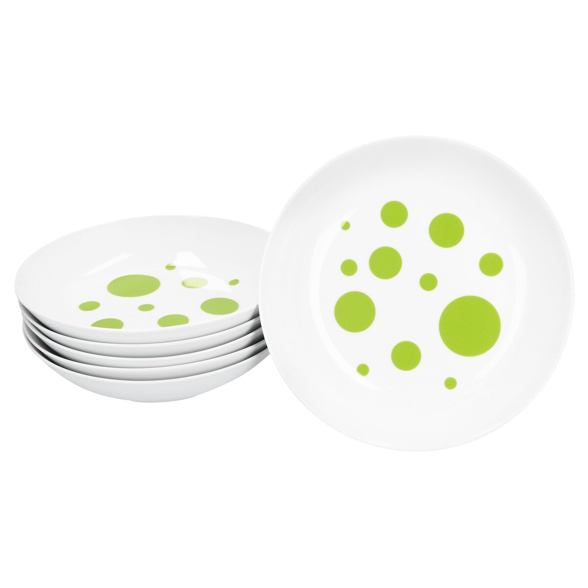 Pula grün 6er Set Suppenteller 450ml Porzellan 6 Pers. tiefe Teller Pasta Punkte