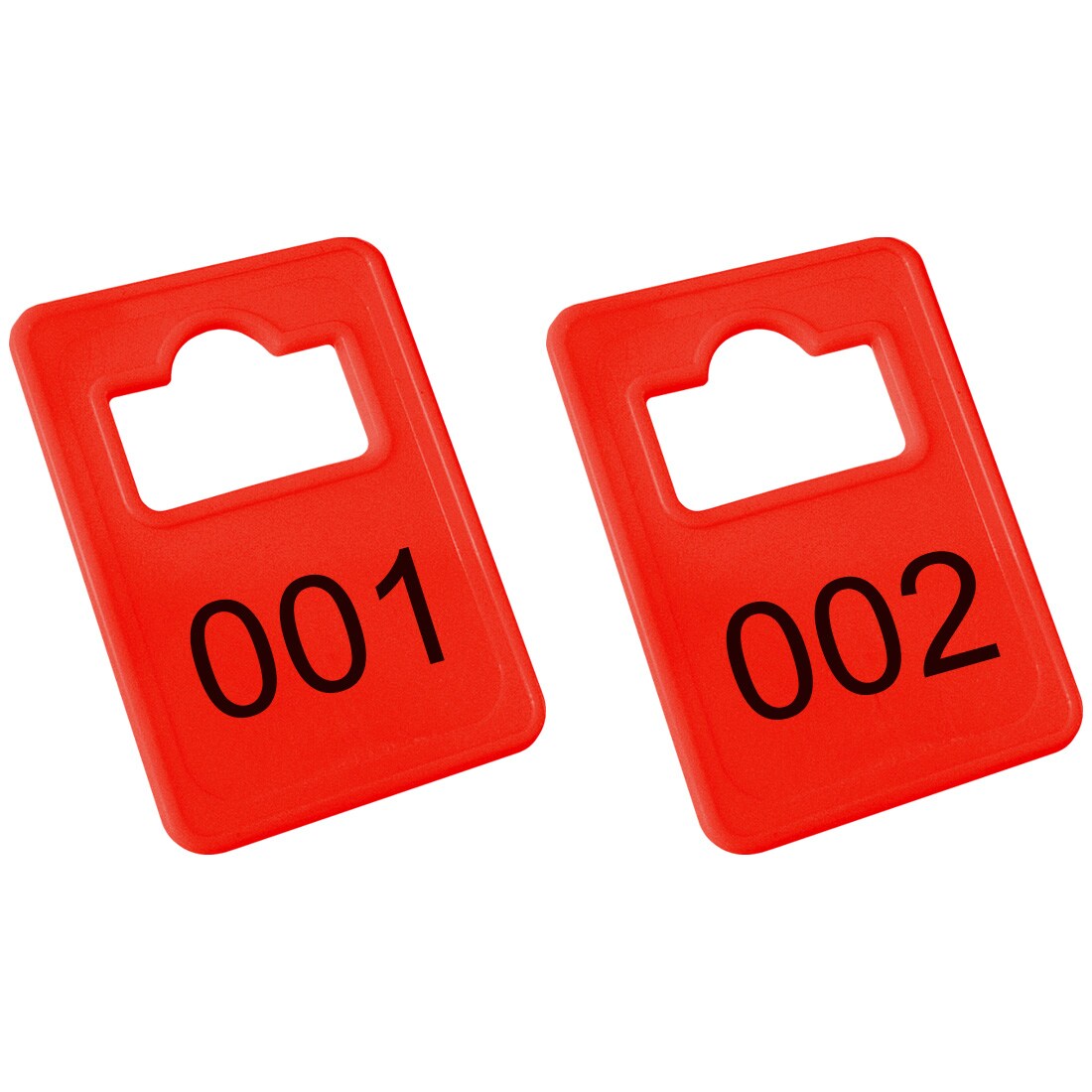 CombiCraft Garderobemarken 'Tiffany' Rot - 100 Stück - nummeriert von 1 bis 100 - aus Kunststoff - 36,3 x 50,5 mm mit Aufhängeloch