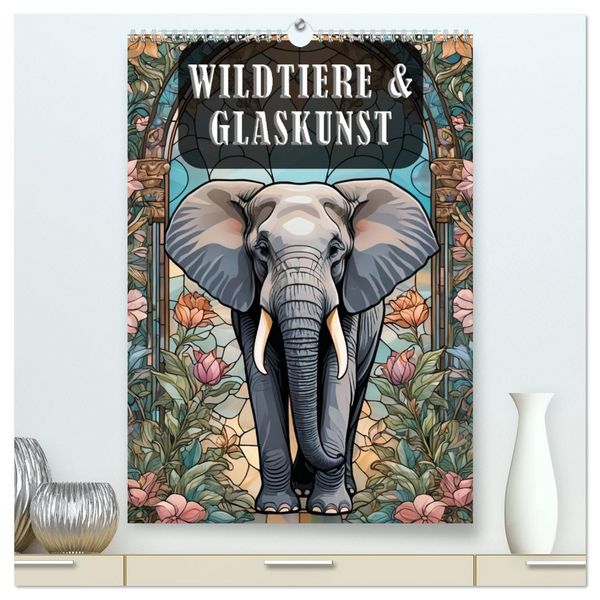 Wildtiere und Glaskunst im Tiffany Stil (hochwertiger Premium Wandkalender 2026 DIN A2 hoch), Kunstdruck in Hochglanz