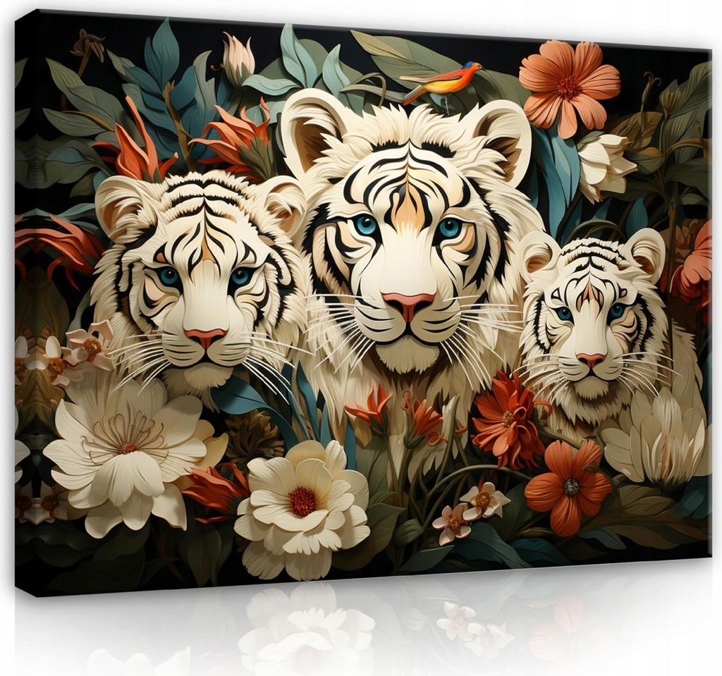 Leinwandbilder Tiger Tiere Blumen Abstrakt 60x40 cm XXL Modern Canvas Bild auf Leinwand Bilder Leinwandbild Wandbilder Wohnzimmer Schlafzimmer